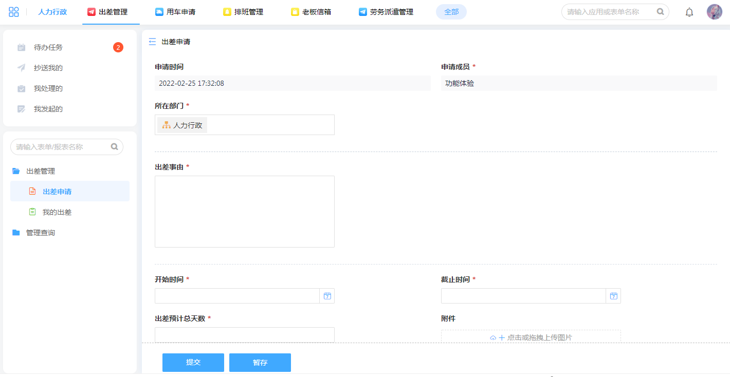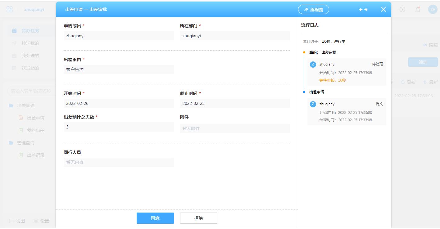一键发起出差申请,灵活变更出差进程,提高各部门效率。