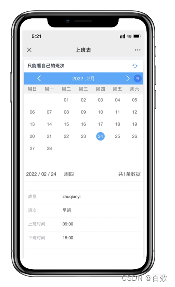 日历的展现形式方便查看自己的排班情况,在移动端也能方便接收排班提醒。
