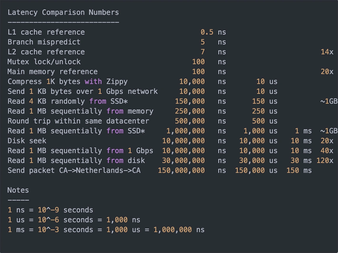 常见硬件组件延时: