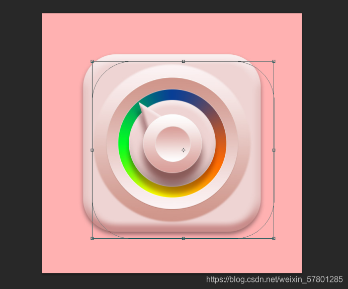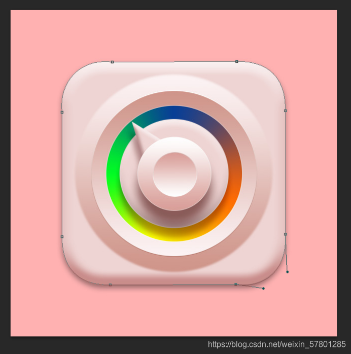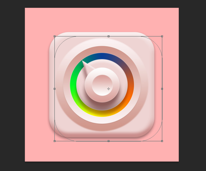 第三步:长按鼠标左键把圆角矩形拖到渐变指南针边缘,再去进行调整,用直接选择工具