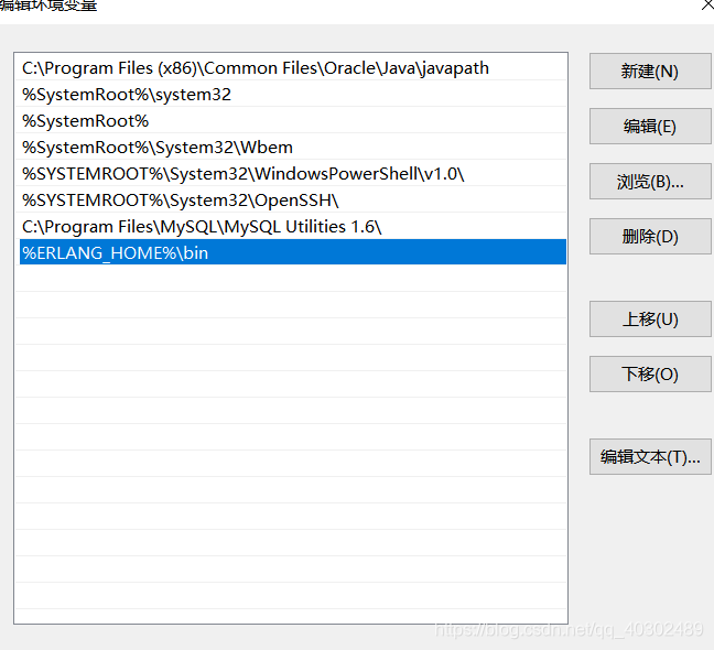 然后找到path环境变量,编辑并添加 %ERLANG_HOME%\bin
