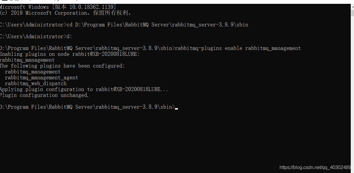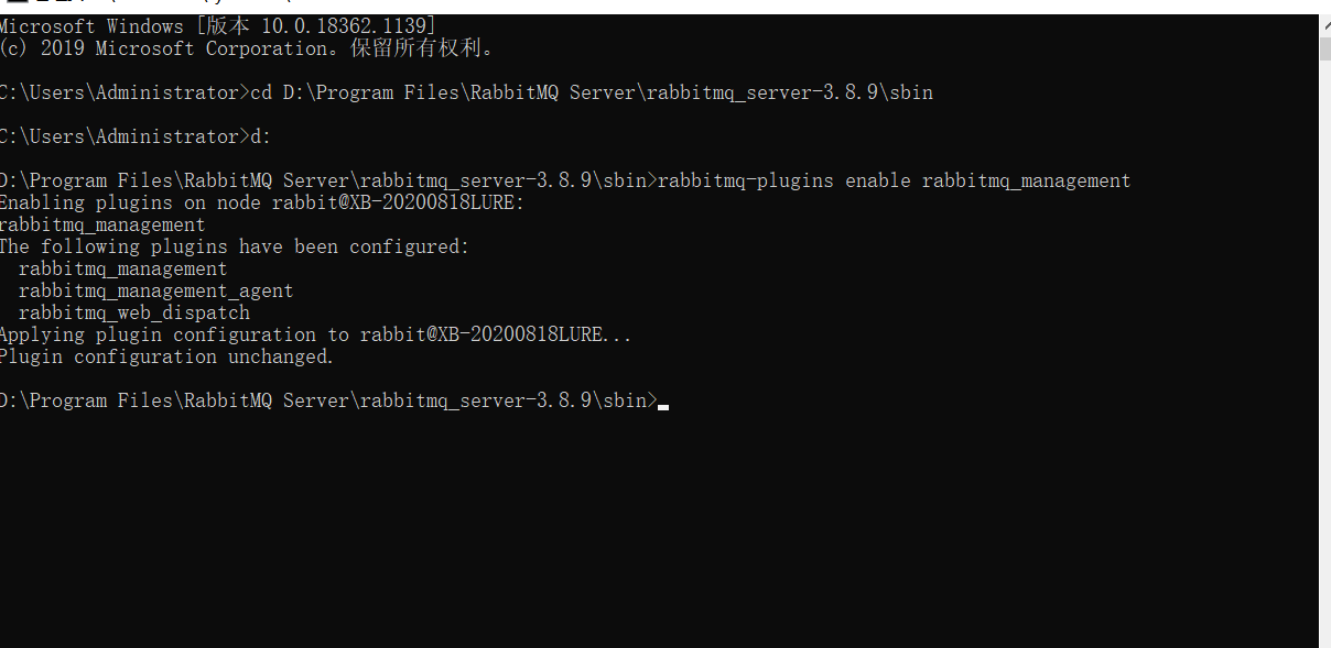 进入后,在后面输入rabbitmq-plugins enable rabbitmq_management命令进行安装