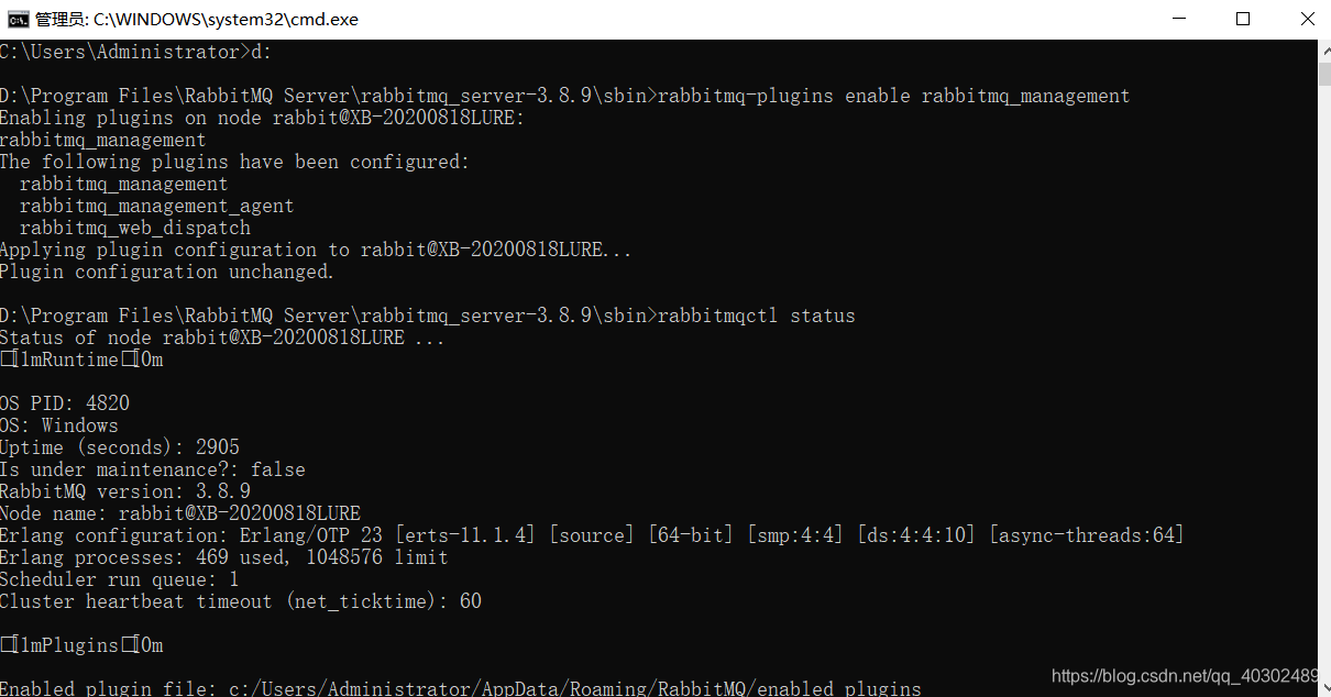 还是win+r cmd 打开黑窗体 复制你mq安装路径的sbin路径 进入对应文件