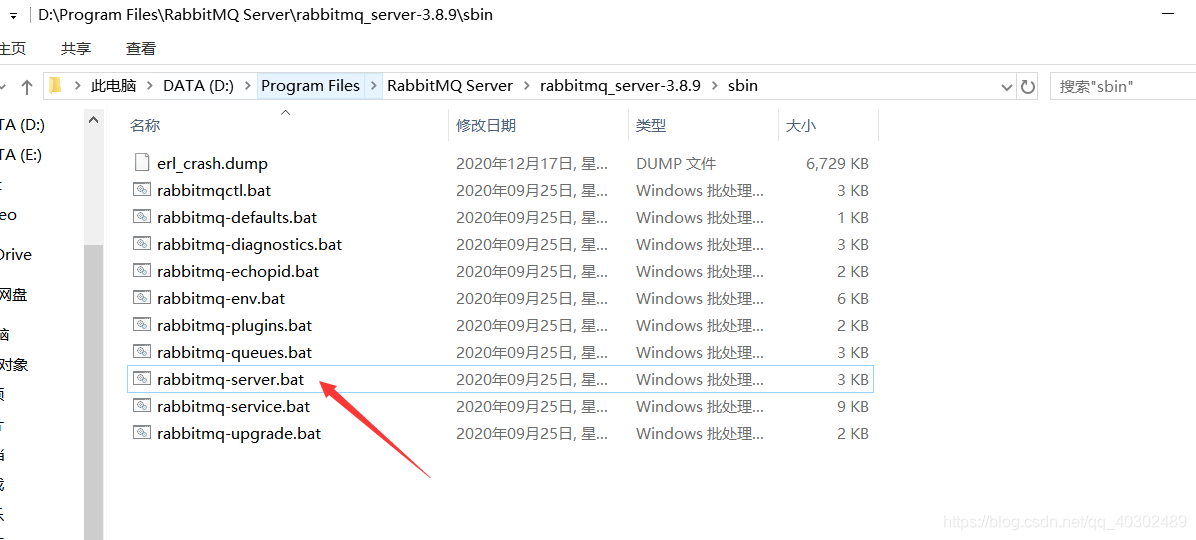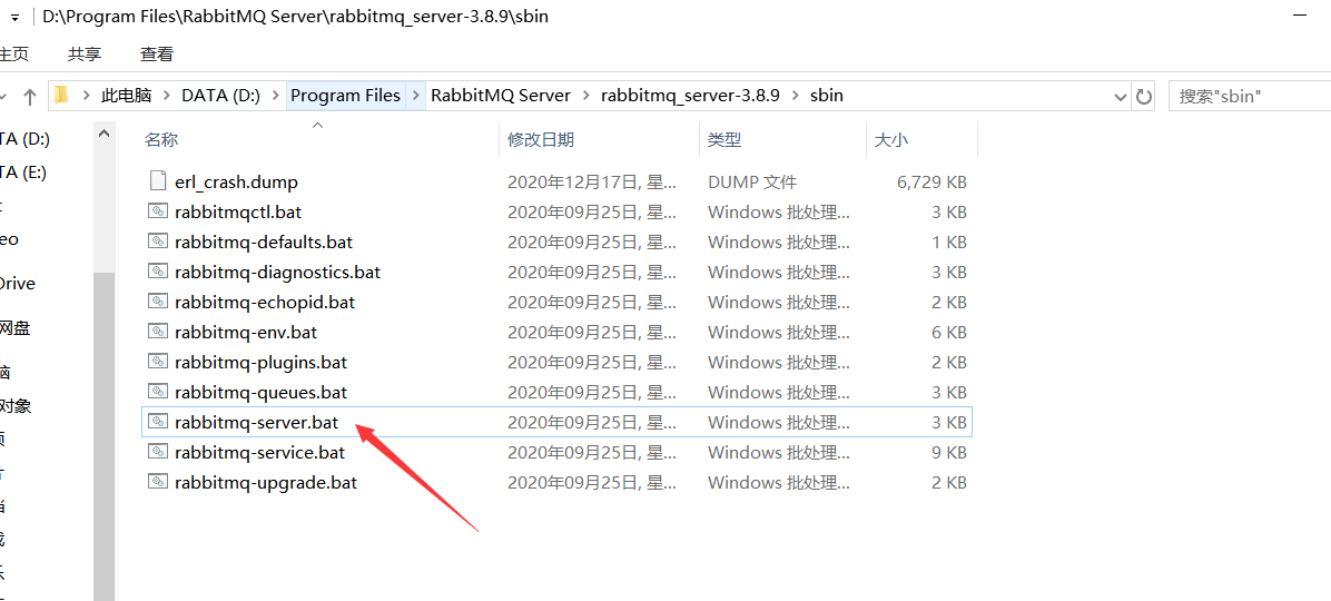 之后找到对应安装目标的sbin文件下找到rabbitmq-server.bat 双击启动