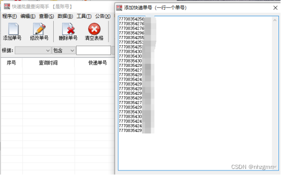 在软件首页点击“添加单号”弹出文件框将需要查询单号复制上去。
