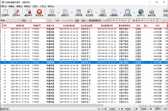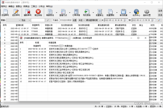 进度条滚动完成,所有物流单号信息全部查询完毕,快递公司、发出物流信息、最后更新时间等等。