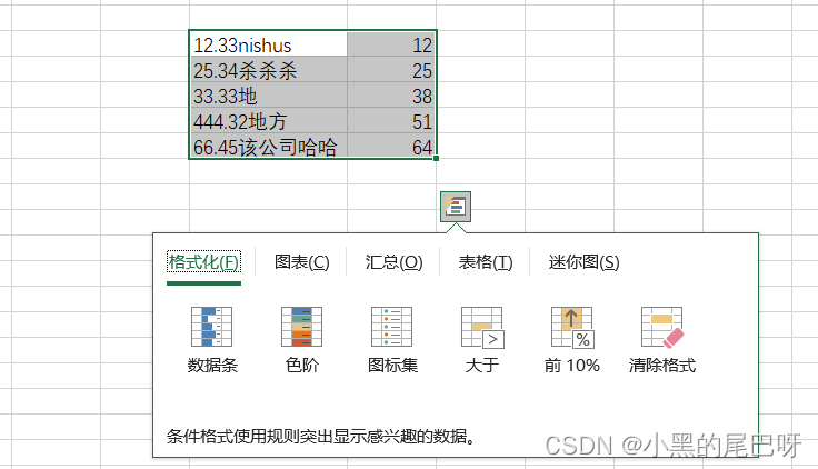 - <=>:条件格式。条件1;其他或者条件1;条件2;其他