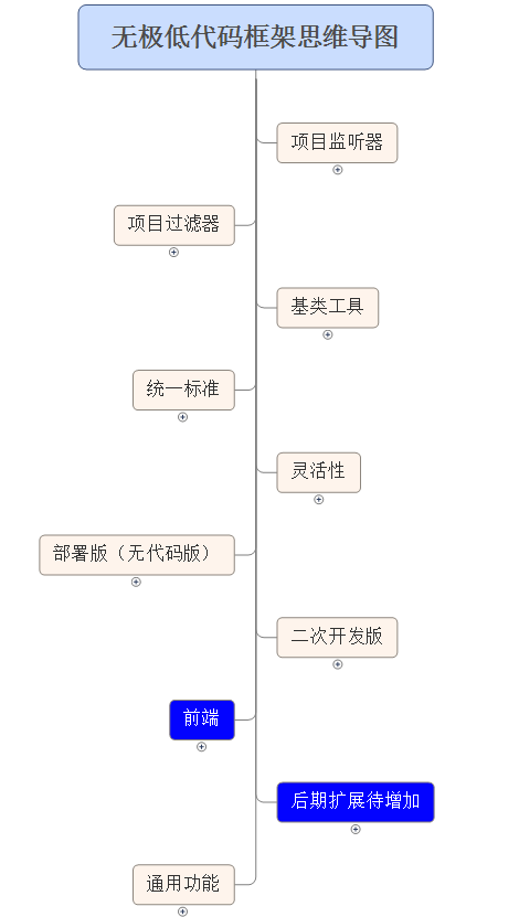 无极低代码是作者经过多年的积累,结合项目实践,完成的一个低代码开发平台,有两个版本部署版、开发版,主要目的是降低开发难度让只懂sql的人也能快速写服务,加快项目开发的进度自动生成基础的前、后端代码,主要框架设计思路如下: