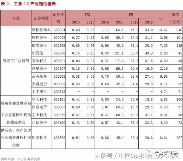 东方证券则将工业4.0产业分为上中下游三部分企业,并看好智能工厂解决方案提供商: