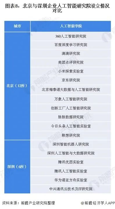 此外,腾讯、华为两大科技巨头,也在深圳创办了腾讯优图实验室、腾讯人工智能实验室和华为诺亚方舟实验室。但是,与北京企业设立的人工智能实验室数量来比,深圳仍有些差距。