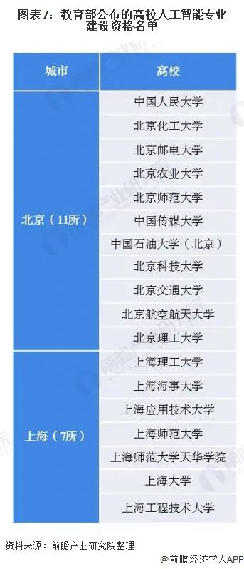 此外,根据教育部公布的高校人工智能专业建设资格名单中,北京拥有11所大学获得教育部批准设立人工智能专业,上海也有7所大学设立了人工智能专业,深圳没有大学获得教育部批准。造成这种现象的主要原因是我国知名高等学府主要集中在北京,深圳知名高等学府较少。