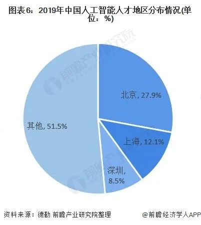 在这一方面,北京再次夺冠,2019年北京人工智能人才储备占全国比重的27.9%,遥遥领先于上海和深圳。