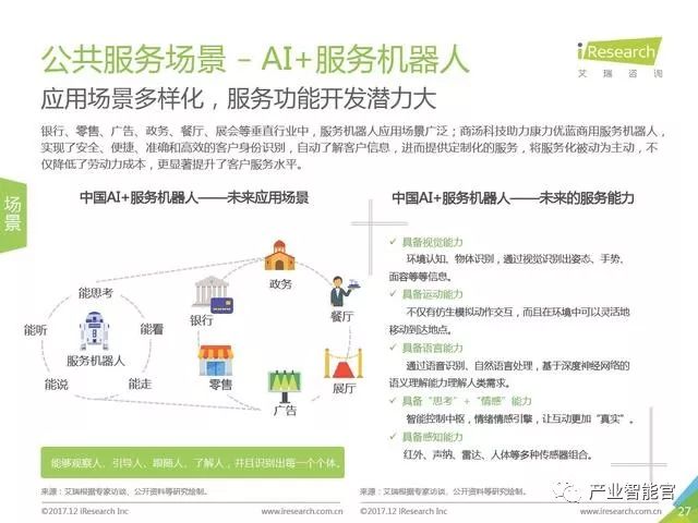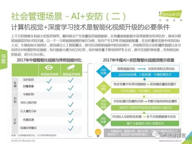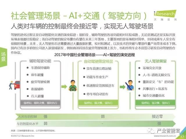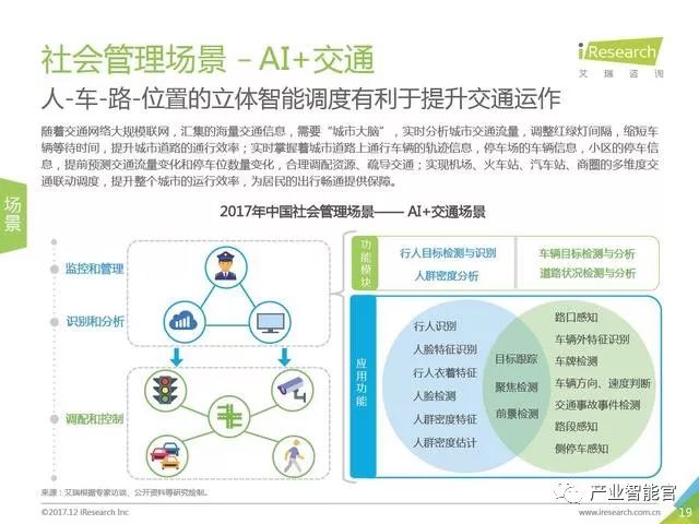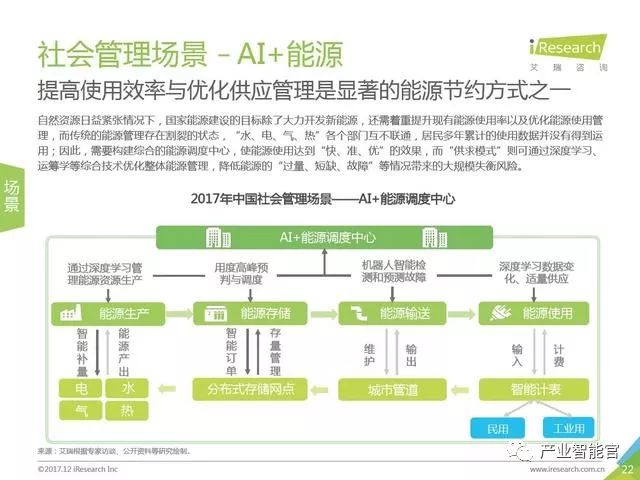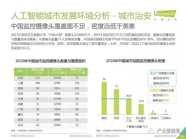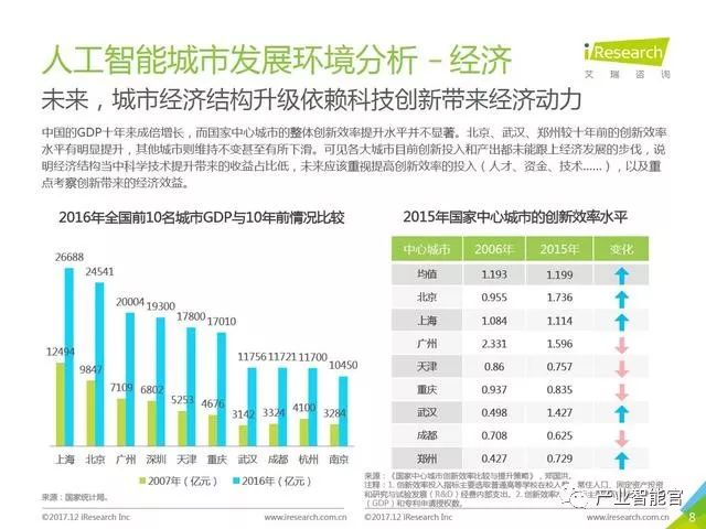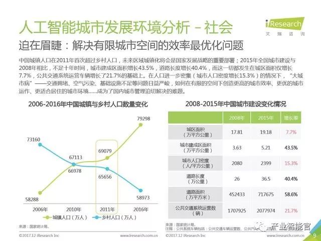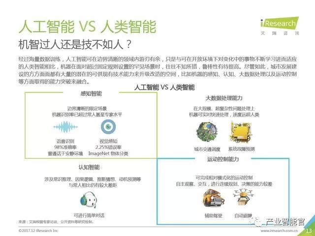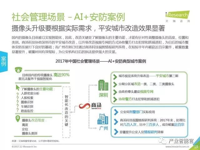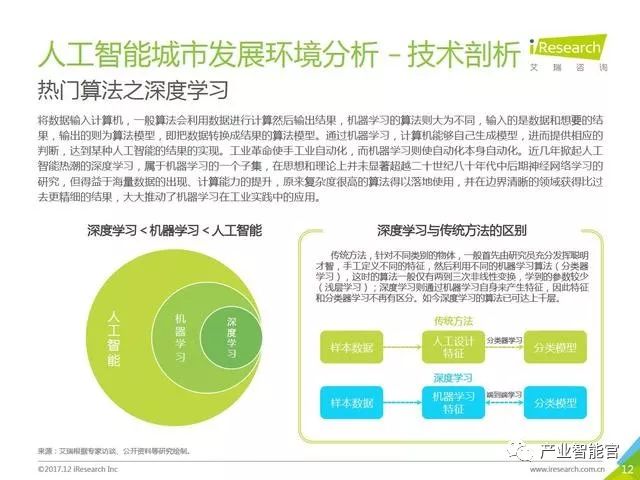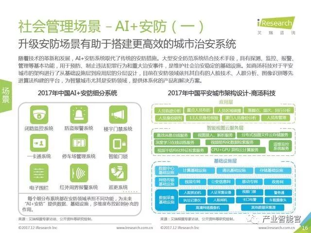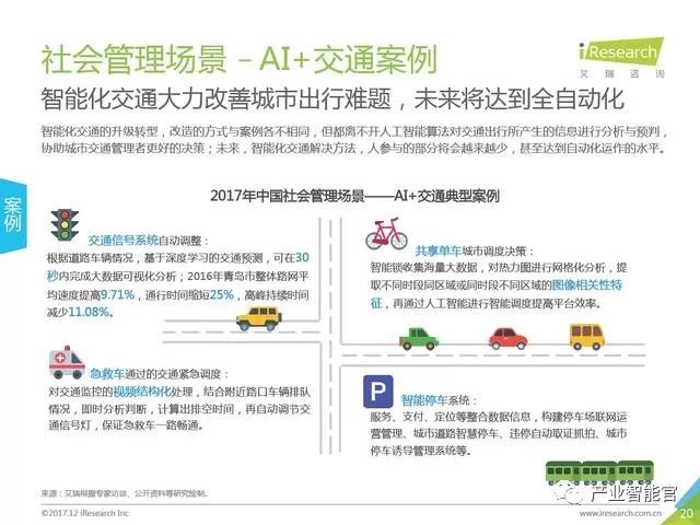 1月3日,艾瑞咨询发布《2017年中国人工智能城市展望研究报告》,报告显示,政府在近三年时间密集出台鼓励人工智能技术发展的政策,说明十分重视此次技术发展的机遇,从大力促成中国到2030年成为世界人工智能创新中心的决心可见,希望中国能够赶上这一次的技术革命,而不再仅仅是不掉队的要求。中国城市的政策方向则回归以人为本的核心,城市的发展都围绕着“高效、惠民、可持续发展”理念,让城市建设迎来转型升级的重大机遇。