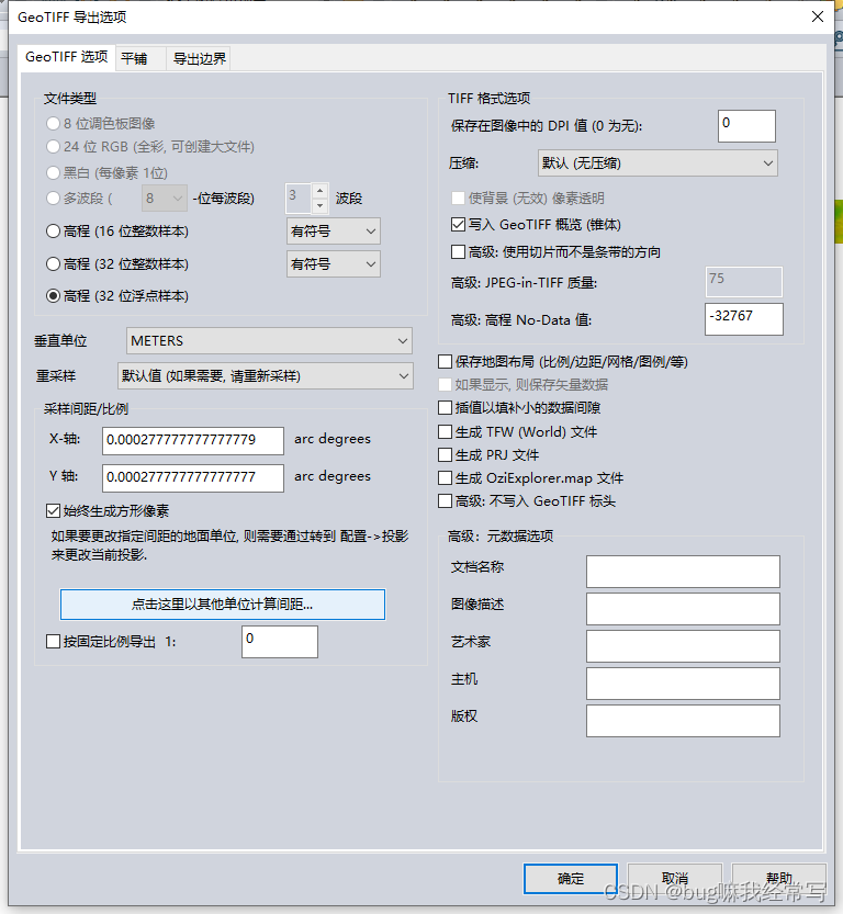 数据量大的话,导出结束时会提示将文件保存为BigTIFF,同意就行