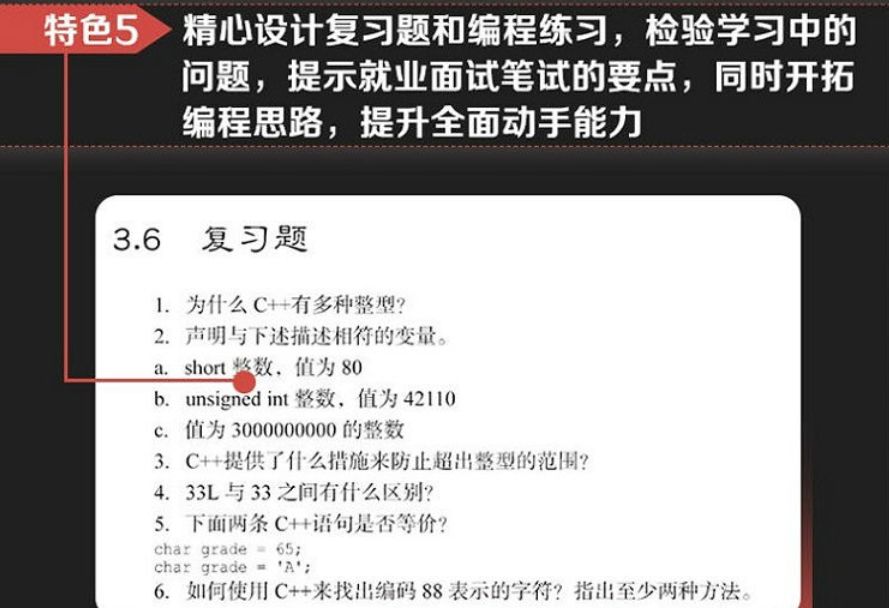 特色5:精心设计复习题和编程练习,检验学习中的问题,提示就业面试笔试的要点,同时开拓编程思路,提升全面动手能力。