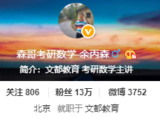 余丙森也是以前文都的考研老师,粉丝数13万!