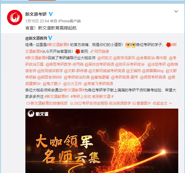 我在知乎上看到了这个问题,然后去微博搜索,果然有了新文道考研: