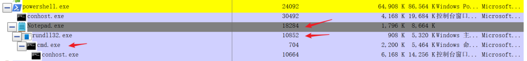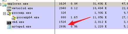 可以看到在PID 2836启动了notepad.exe