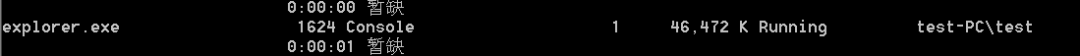在列表中,可以看到explorer.exe进程以test身份在进程ID 1624上运行。