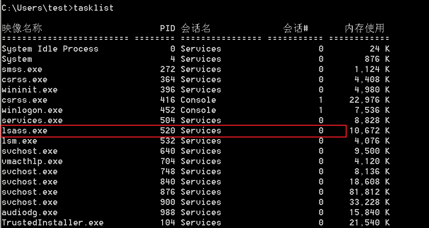 在受感染端,使用tasklist /v查看进程运行详情。