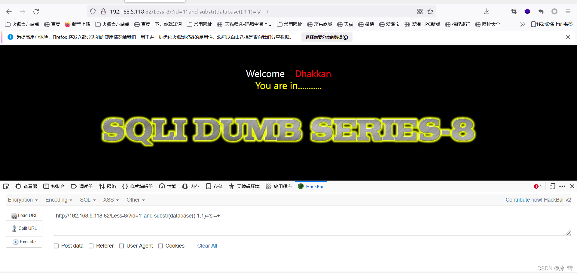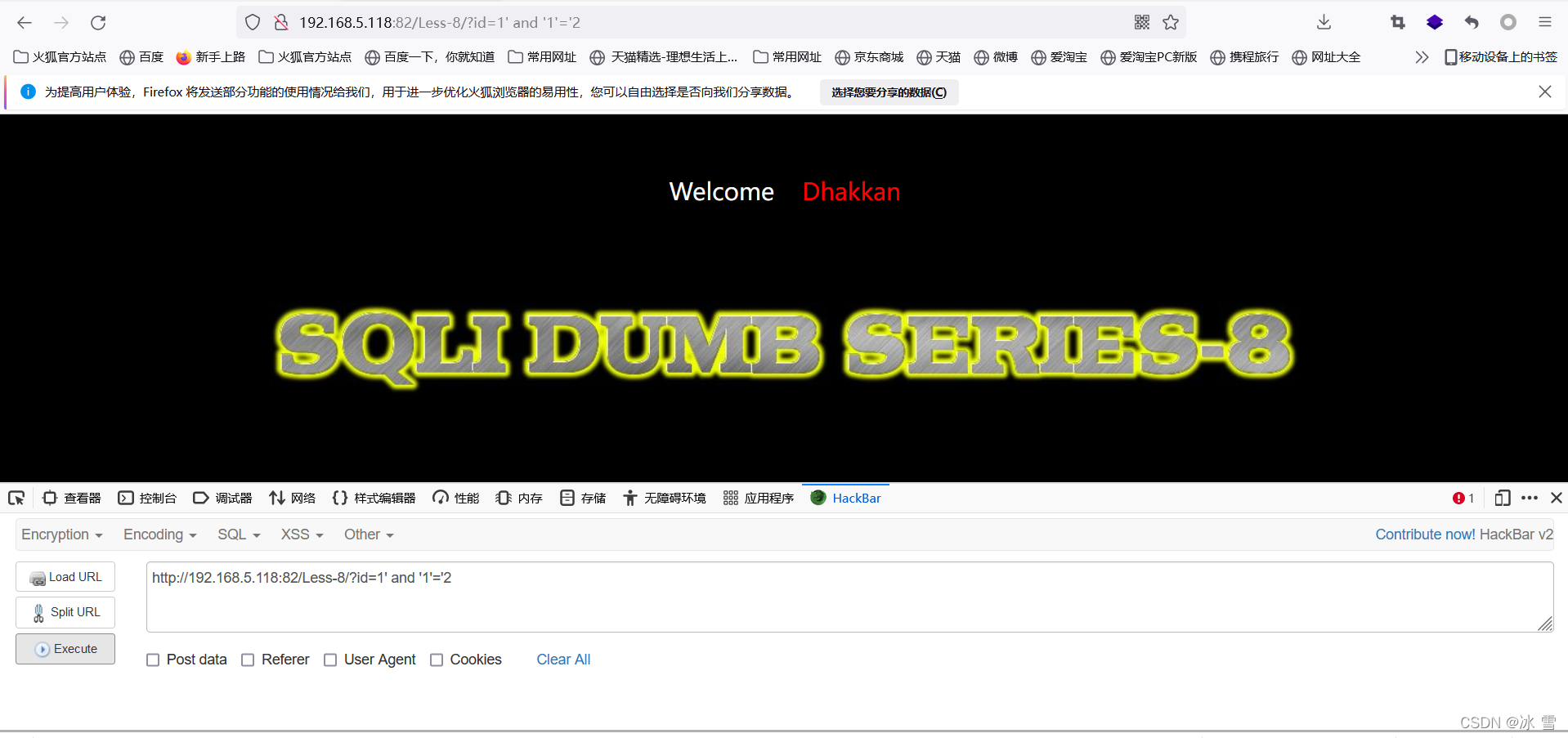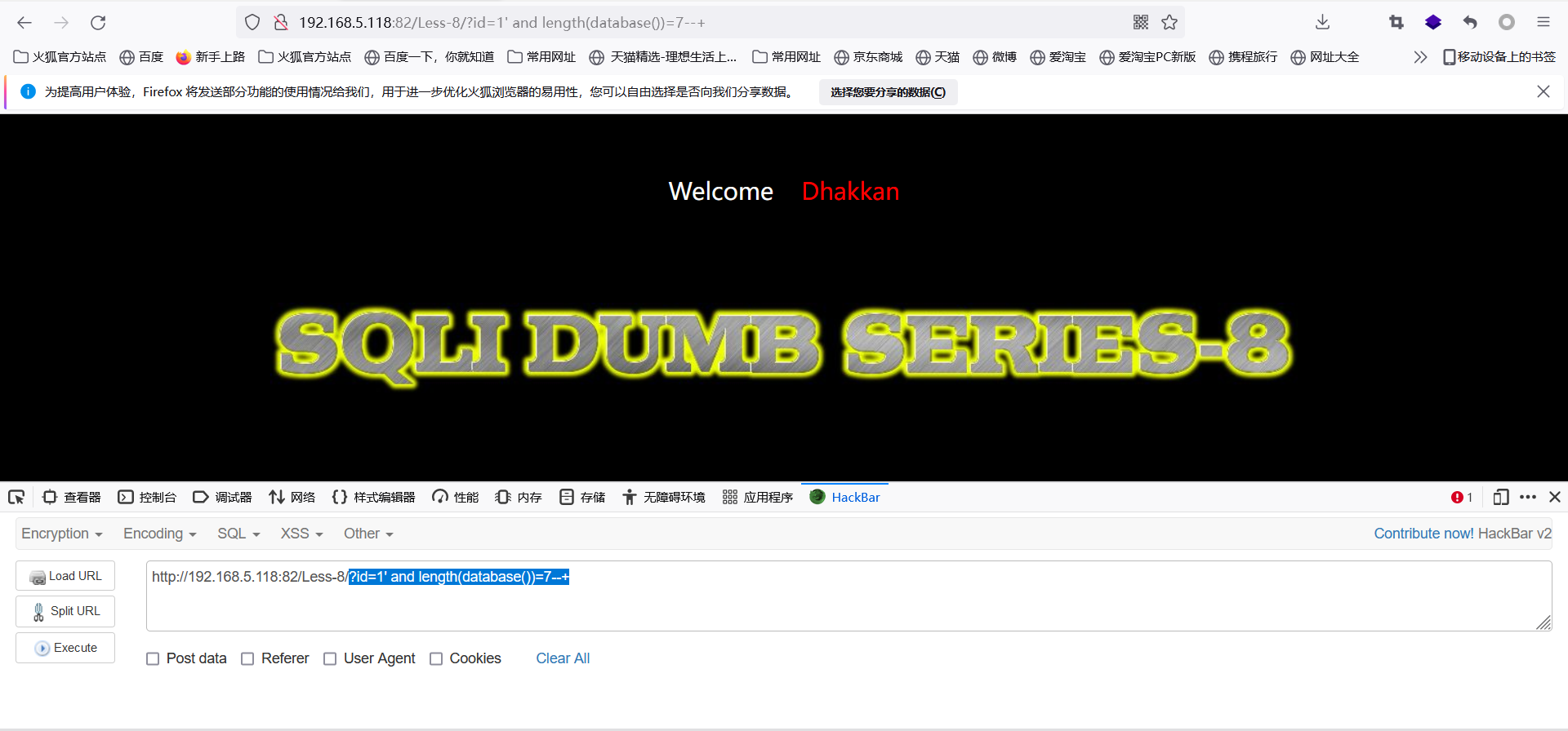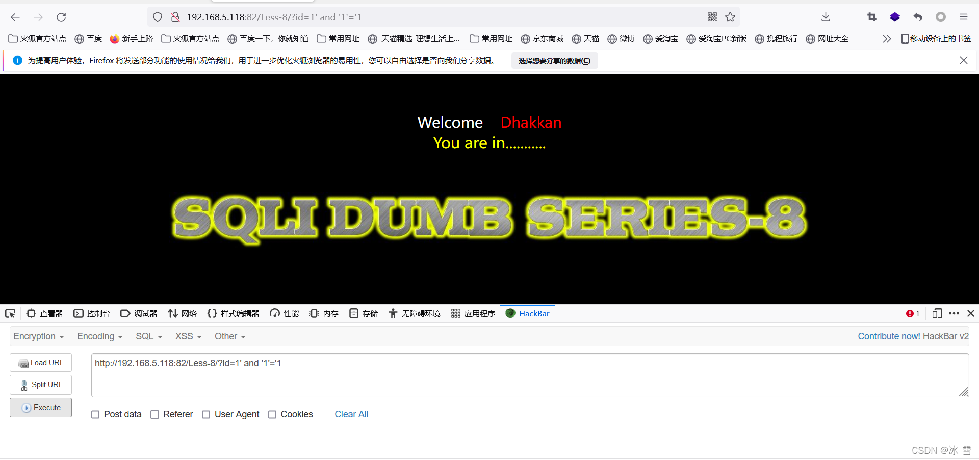 在攻击机Pentest-Atk打开FireFox浏览器,并访问靶机A-SQLi-Labs上的SQLi-Labs网站Less-8。访问的URL为: