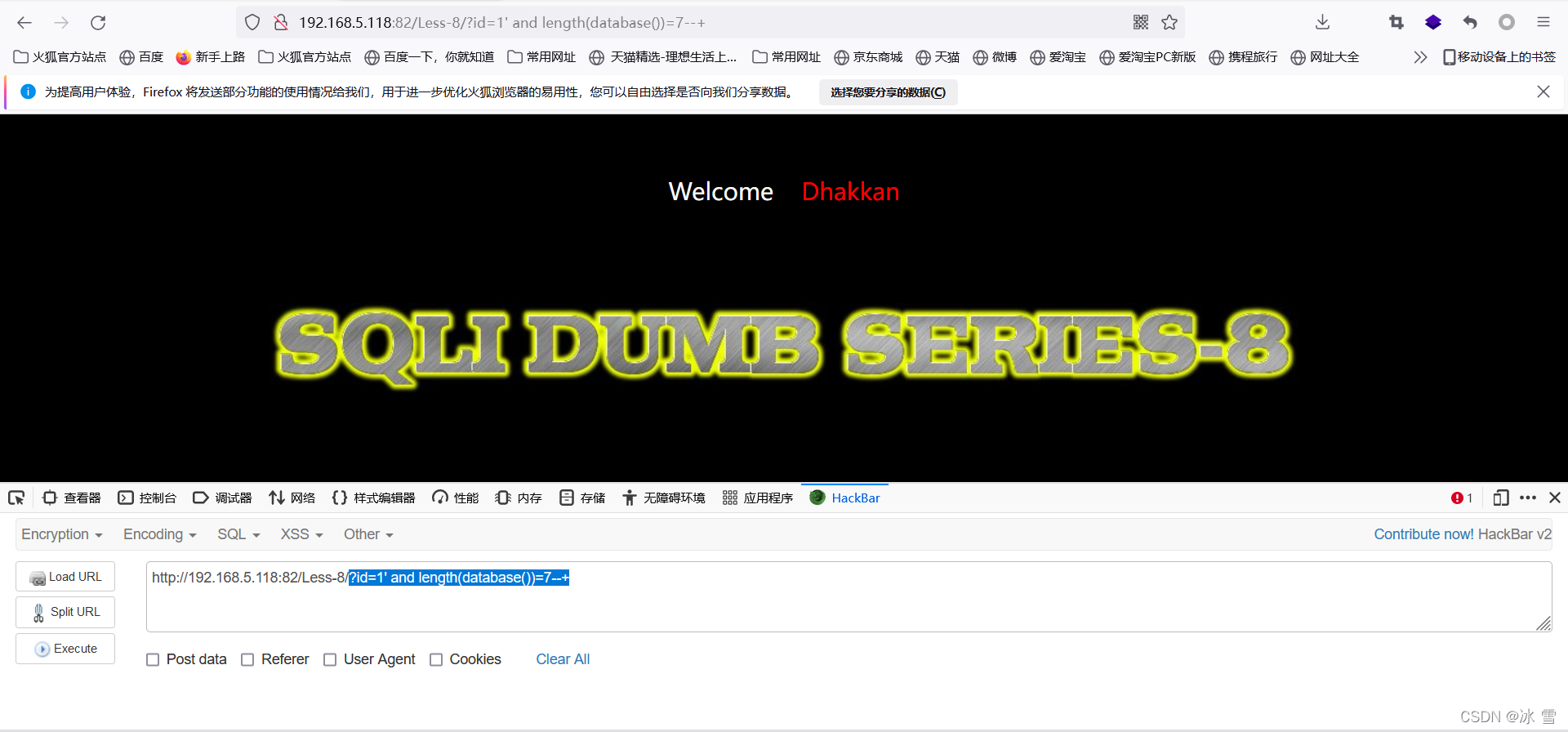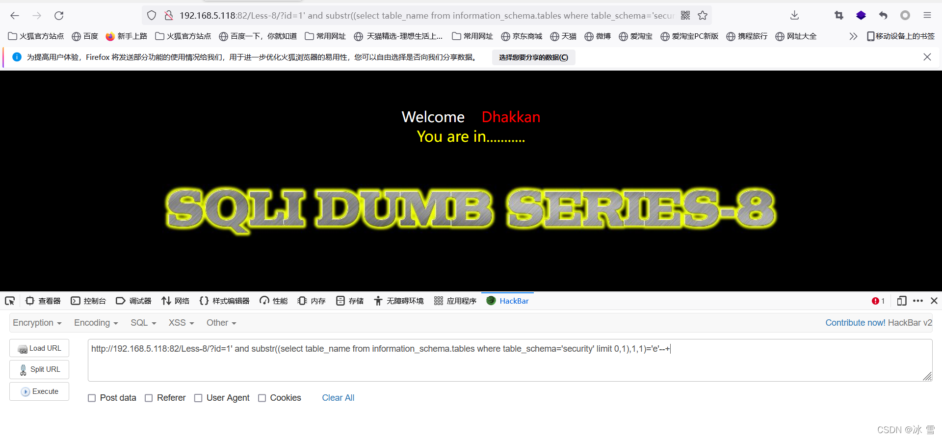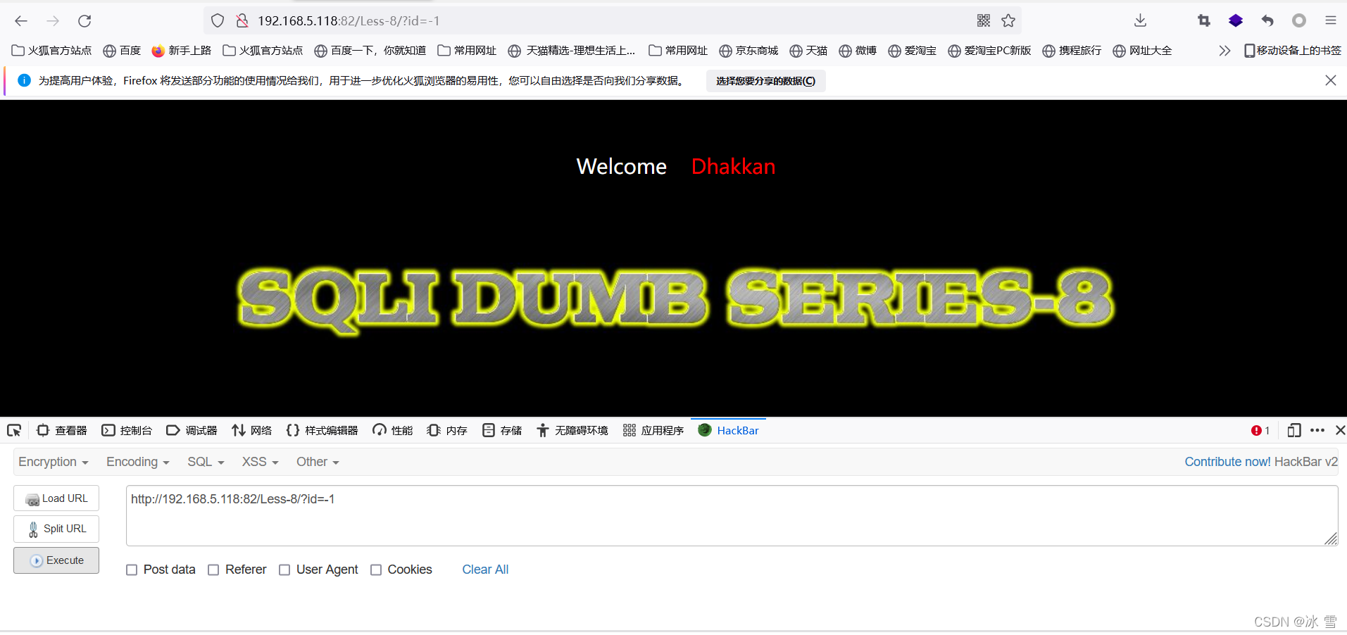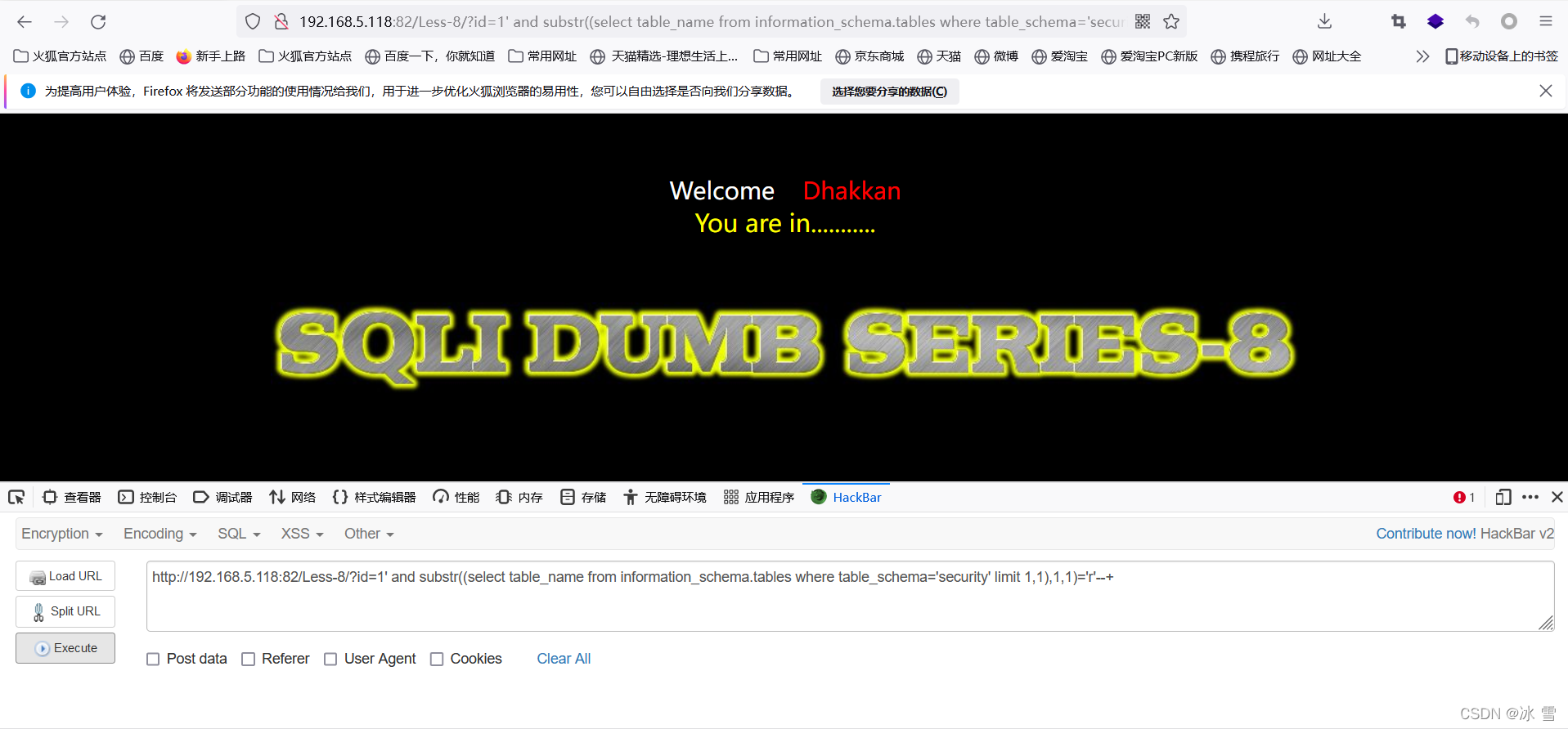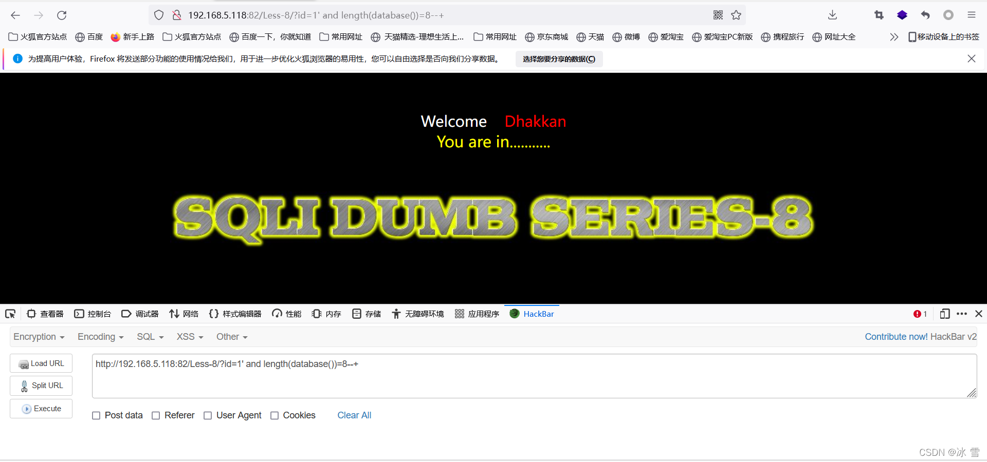 在攻击机Pentest-Atk打开FireFox浏览器,并访问靶机A-SQLi-Labs上的SQLi-Labs网站Less-8。访问的URL为: