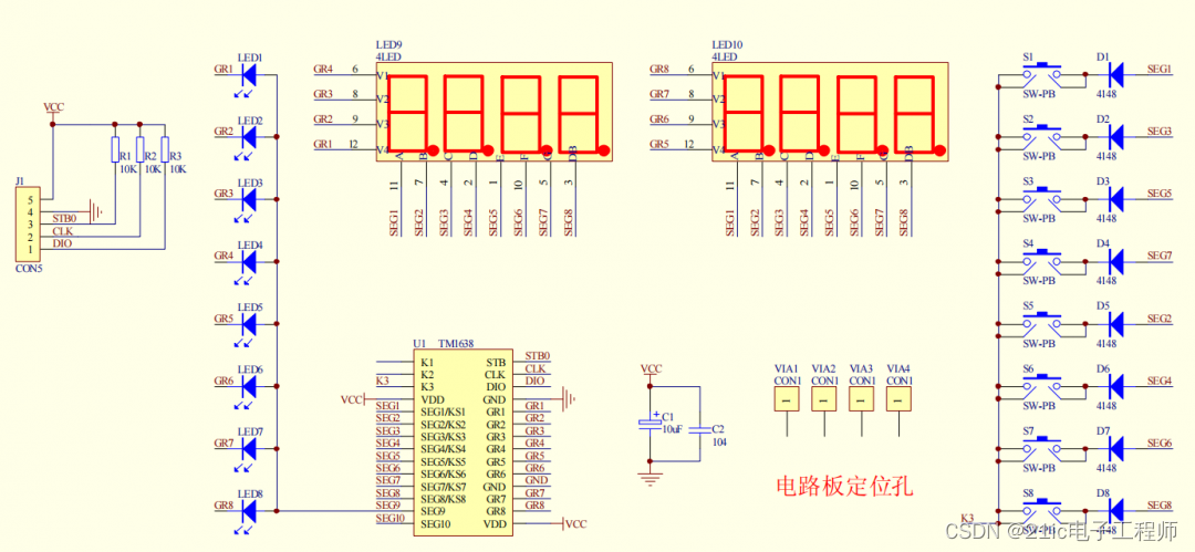 3、附件有TM1638小模块的原理图+电子元器件的原理图封装+PCB封装+3D模型