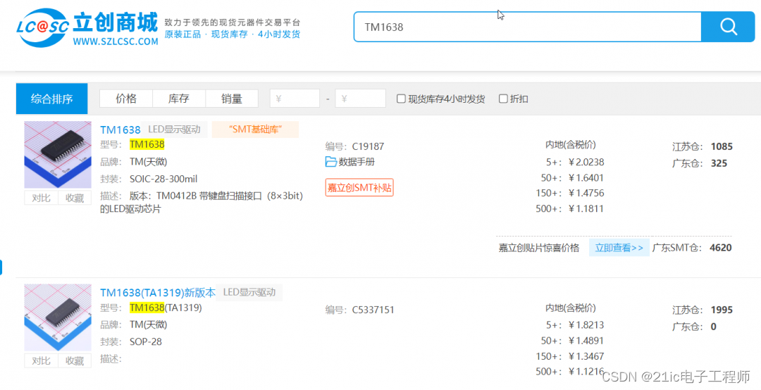 一、想清楚自己想要哪些元器件的封装,在立创商城找到对应编号
