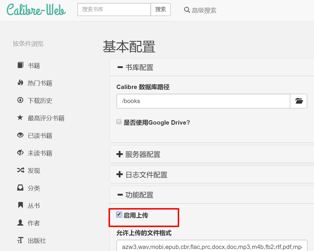 sudo docker run -d \--name=calibre-techno-web \-e TZ=Asian/Shanghai \-e DOCKER_MODS=linuxserver/calibre-web:calibre \-p 80:8083 \-v /data/calibre/config:/config \-v /data/calibre/books:/books \--restart unless-stopped \technosoft2000/calibre-web