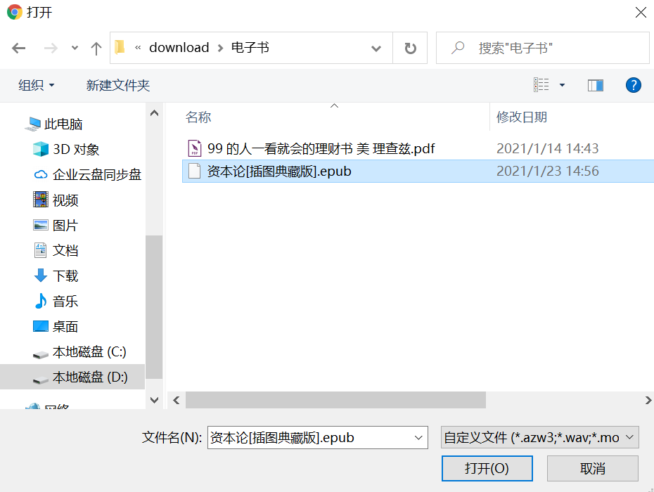 点击保存后,这本书就上传好了,可以看到epub格式的电子书可以直接在线进行阅读。