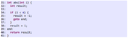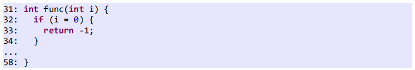 由于编码标准通常包含许多不同的规则,所以它们可以反应大多数代码质量属性问题。大多数规则涉及“可维护性”和“可靠性”,但也有可用于“可移植性”和“效率”的规则。下面是一个违反编码标准的示例。