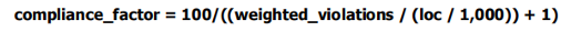 为了解决这一问题,引入了“加权因子” (compliance factor) 的概念。加权因子表示软件代码在多大程度上符合某一组规则。例如,这可能是一组编译器警告或一组安全规则。