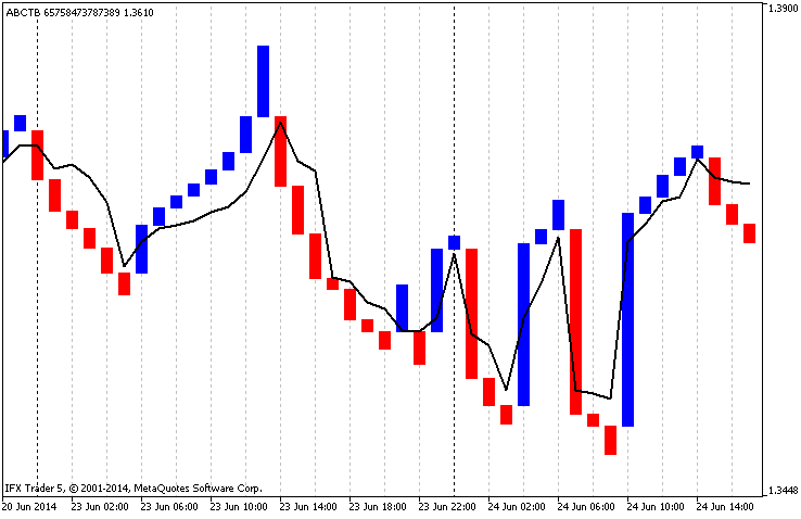 另外附加实现了技术指标 iMA, 其依据主图表的价格建立, 但是它可以及时与指标数据同步。因此,数据由均线过滤 (图例. 4):