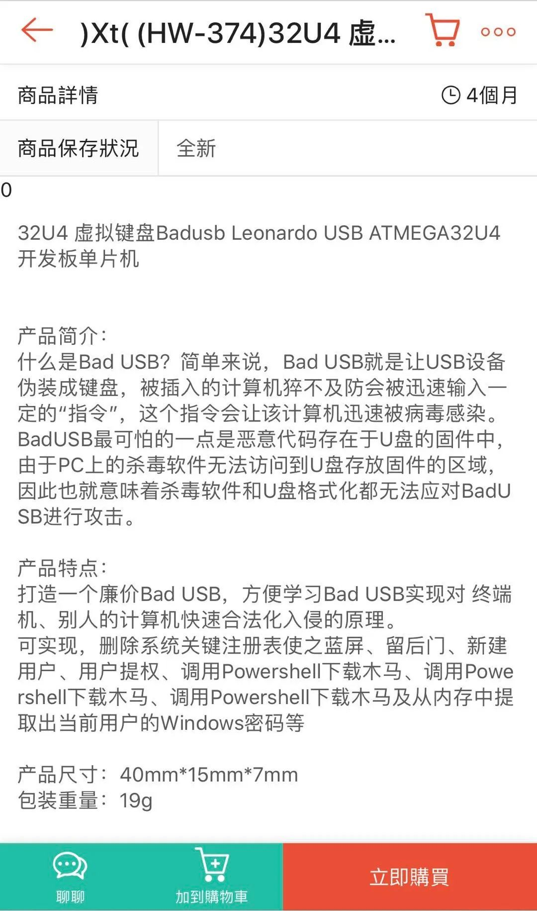 总结一下,这个设备利用杀毒软件访问不到U盘的固件区的漏洞将恶意代码放在固件区。而整个usb设备是模拟成键盘的,我们的PC默认对键盘是信任的,然后自动输入指令,让感染的电脑下载木马。于是这台电脑就在对方的监控下了。