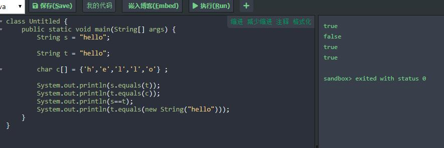 A、D选项是对字符串内容的比较。JVM为了减少字符串对象的重复创建,其维护了一个特殊的内存,这段内存被成为字符串常量池。代码中出现字面量形式创建字符串对象时,JVM首先会对这个字面量进行检查,如果字符串常量池中存在相同内容的字符串对象的引用,则将这个引用返回,否则新的字符串对象被创建,然后将这个引用放入字符串常量池,并返回该引用。所以返回true。