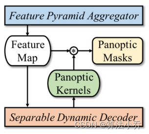 然后,通过 可分离动态解码器 生成全景kernel,进而进行mask的预测和分类。