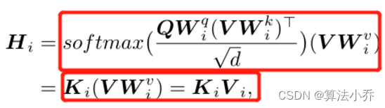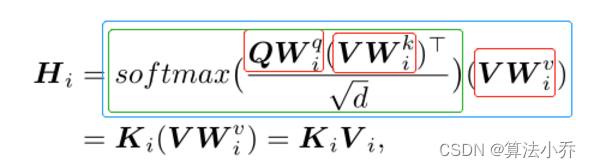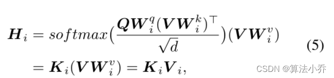 其中,Wo ,shape[c,c] 是一个线性映射矩阵,每个Head内部分注意力定义计算如下: