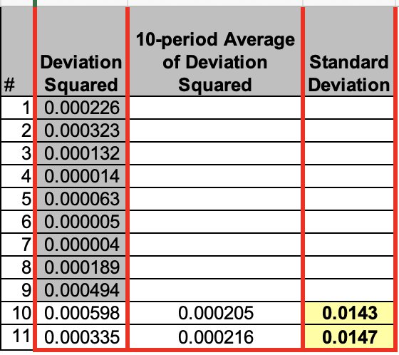 步骤四: 计算偏差平方 10 个周期的平均值。