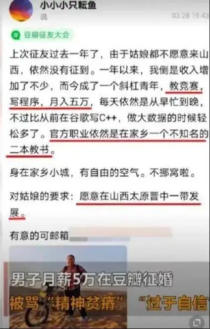 男子清华姚班毕业!月薪五万,网上征婚,却屡遭遇嘲讽……