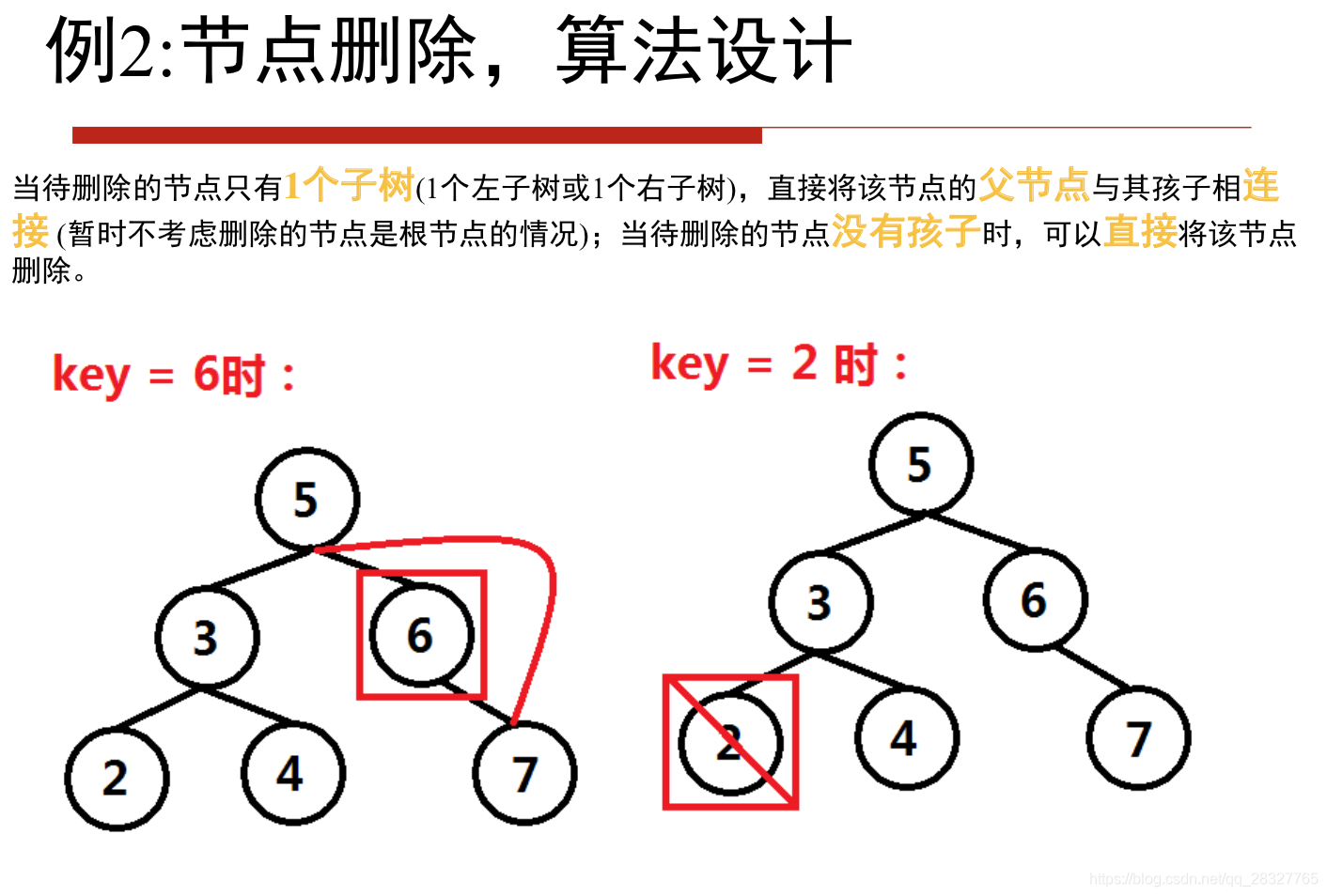2. 如果左子树为空,将右子树顶上来,如果右子树为空,左子树顶上来