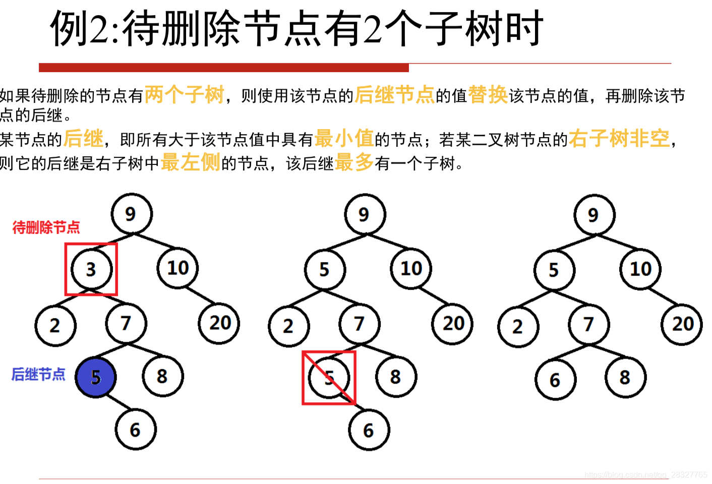 3. 左右子树都不为空时,将右子树的最左节点替换为当前root节点,这样处理后,仍是BST