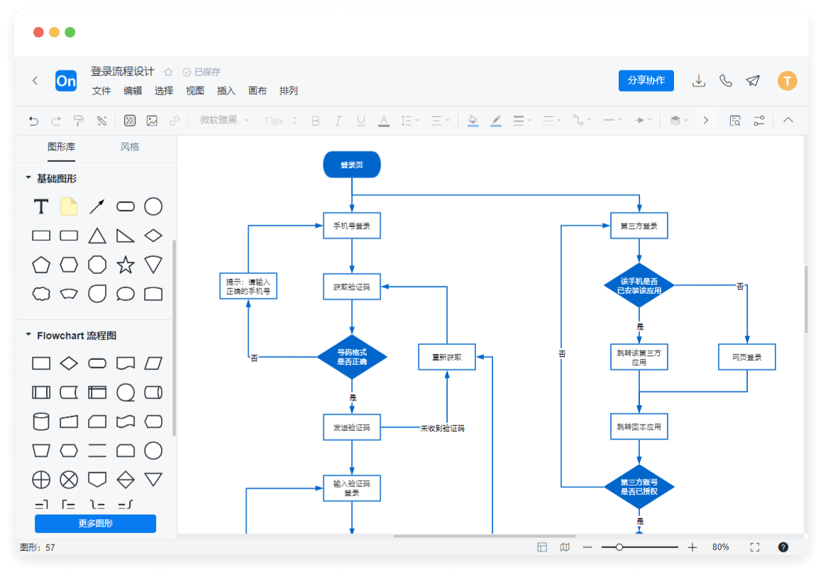 在别人的推荐下,开始尝试在线绘图平台——ProcessOn。早先的ProcessOn在图形元素的丰富性上,还是存在差距的。当然咯,现在再去看,似乎已经丰富不少。不可否认的是,在线绘图平台最大的好处就是跨平台、以及更便捷的团队协作。