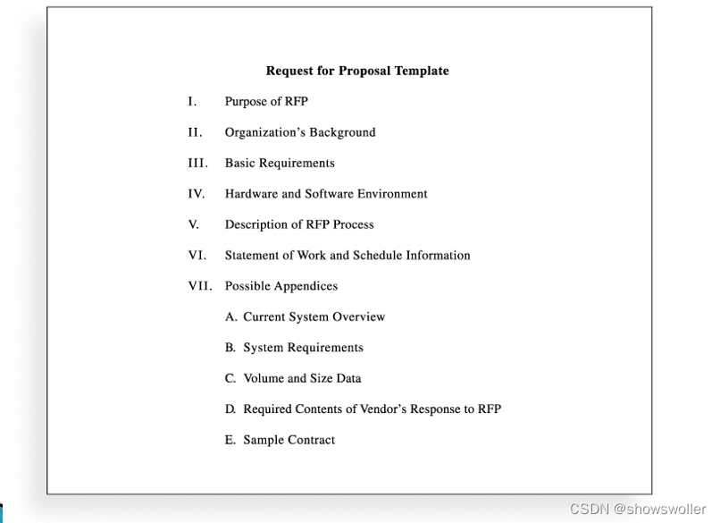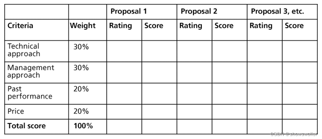 最好在发布正式的RFP或RFQ之前,准备一些形式的评估标准是很重要的