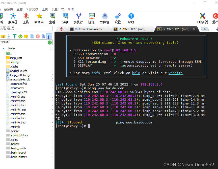 以下为MobaXterm 与 虚拟机SSH 远程连接测试