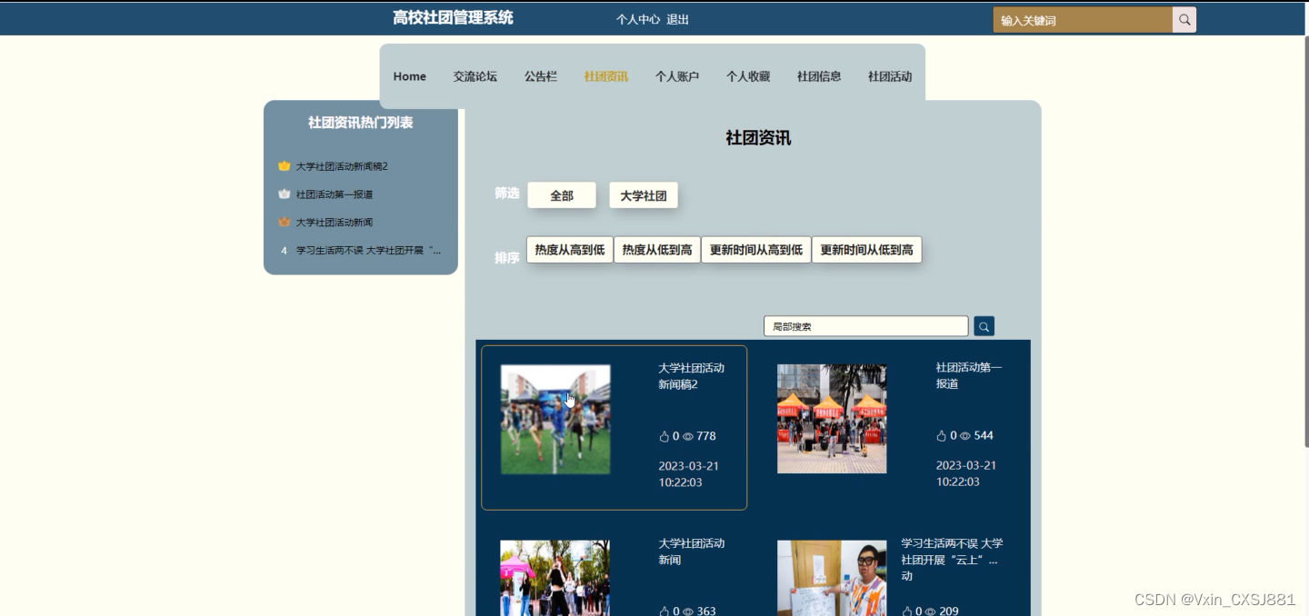 高校社团管理系统的完成,如何实现的更好,其中付出的努力是很大的,这段时光将会终身难忘。