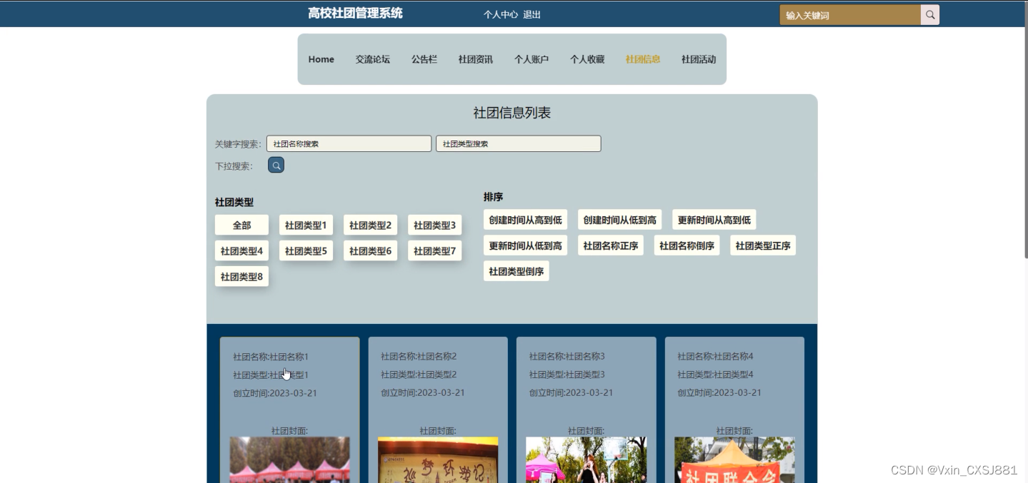 目前许多人仍将传统的纸质工具作为信息管理的主要工具,而网络技术的应用只是起到辅助作用。在对网络工具的认知程度上,较为传统的office软件等仍是人们使用的主要工具,而相对全面且专业的社团信息管理软件仍没有得到大多数人的了解或认可。本选题则旨在通过标签分类管理等方式,实现首页,网站管理(轮播图,公告栏),内容管理(论坛列表,论坛分类,社团资讯,资讯分类),人员管理(管理员,学生),模块管理(社团分类、社团信息、入团申请、社团成员、社团活动),个人管理等系统管理功能,从而实现快捷方便的社团资讯查询、入团申请、社团成员、社团活动等需求。