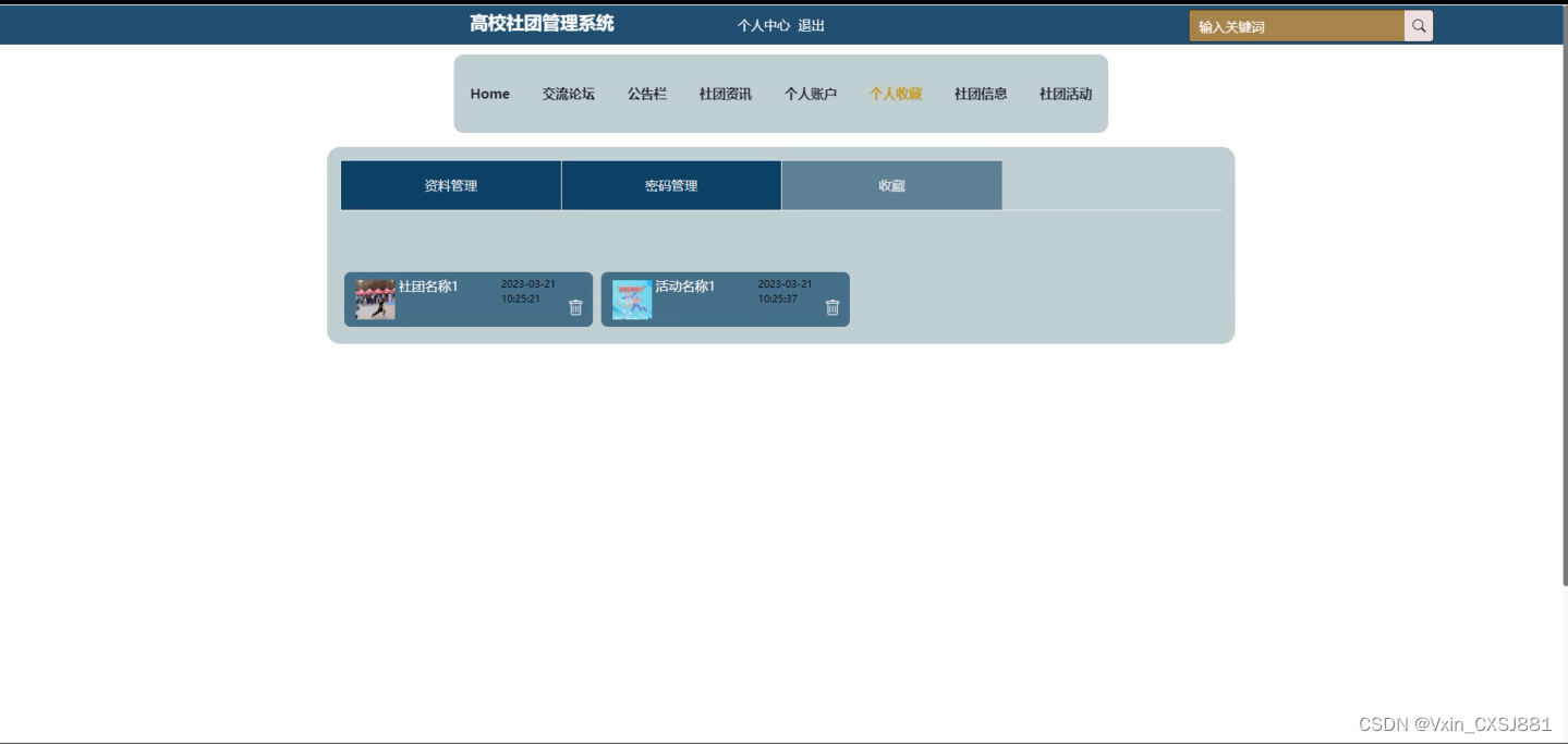 个人收藏,在此界面可以查看自己收藏的文章等,可进行删除等操作,如图5-11所示。