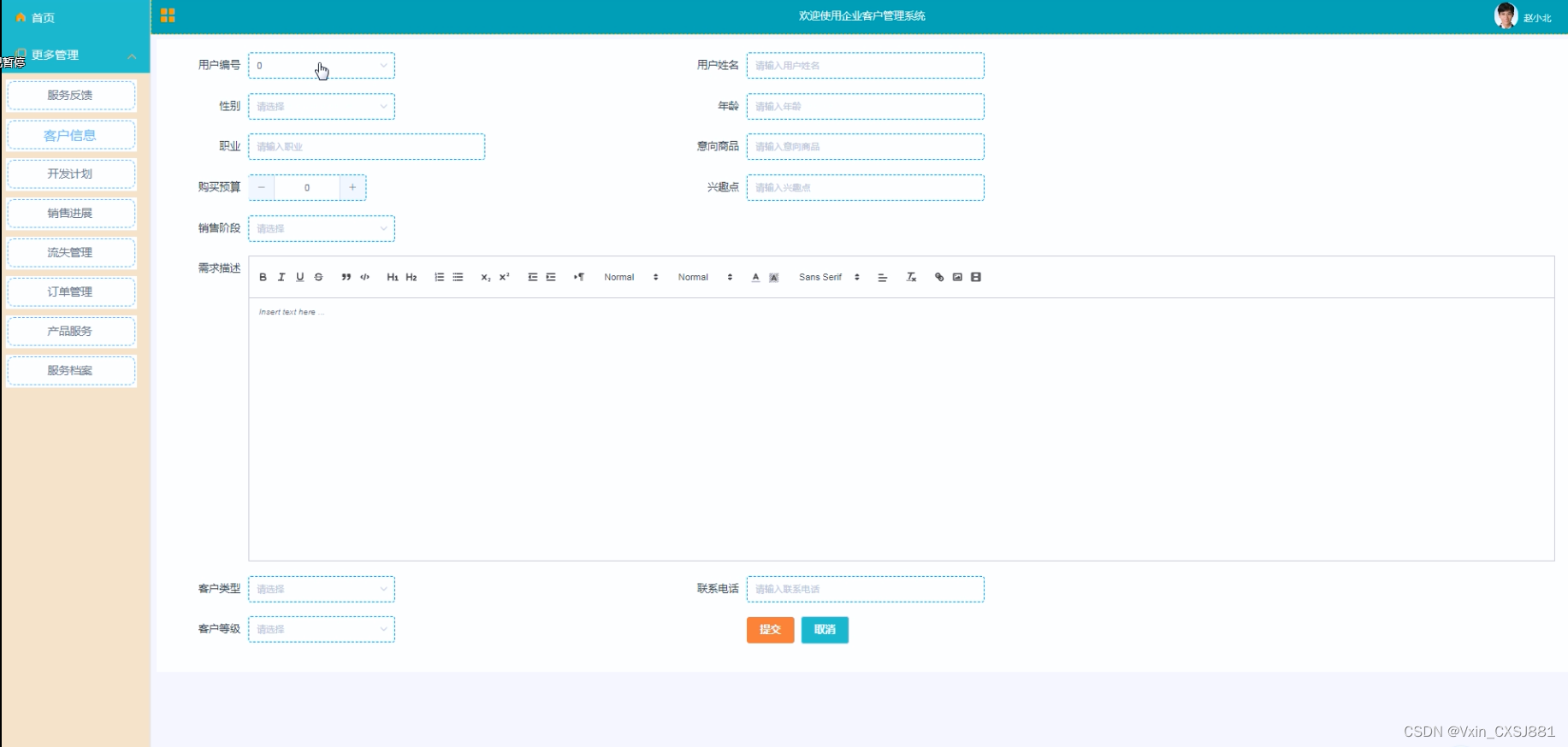 In the system design, B/S structure is adopted, and spring boot technology is also used to design on the dynamic page. MySQL database is used in the background, which is a very convenient enterprise customer management system.